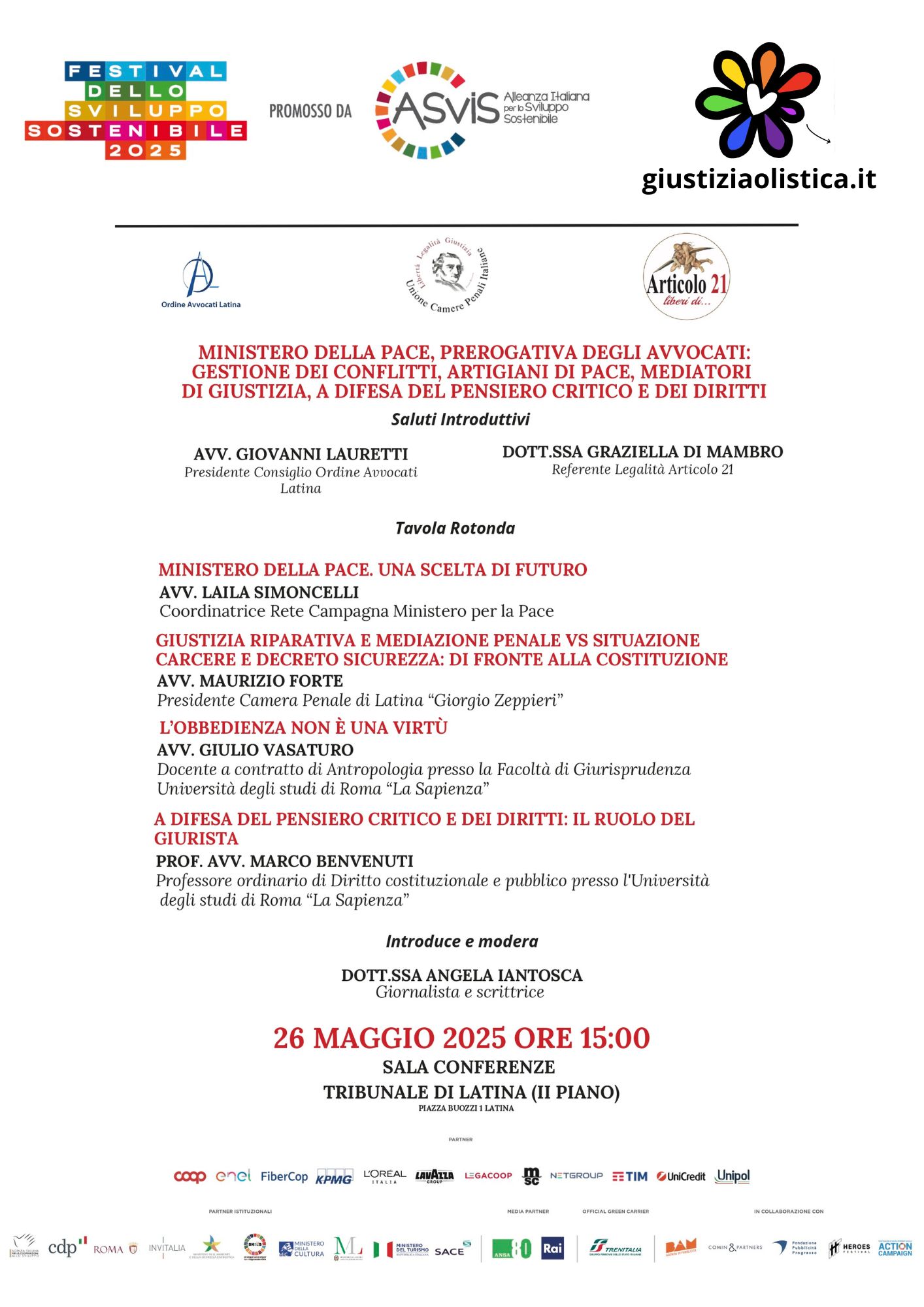 PER IL TERZO ANNO CONSECUTIVO GIUSTIZIA OLISTICA SARA’ PROTAGONISTA A LATINA DEL FESTIVAL DELLO SVILUPPO SOSTENIBILE.