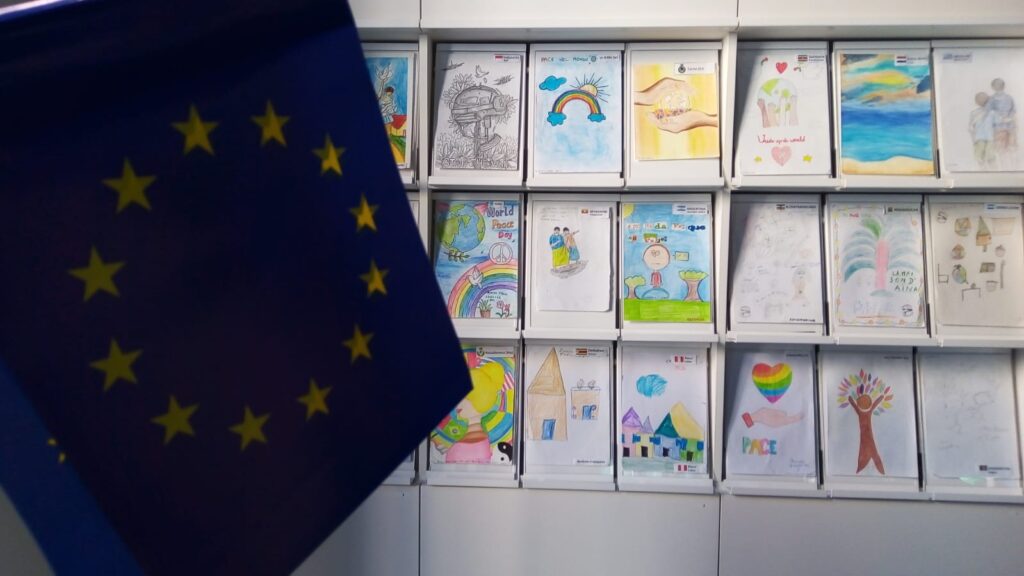 Una mostra dei disegni dei bambini è stata allestita dal vulcanico ed instancabile Antonio Giannelli, Presidente di Colors for Peace, anche all’interno della sede del Parlamento Europeo in Italia, l’associazione ambasciatrice di Pace gode dell’Alto Patronato proprio del Parlamento Europeo.